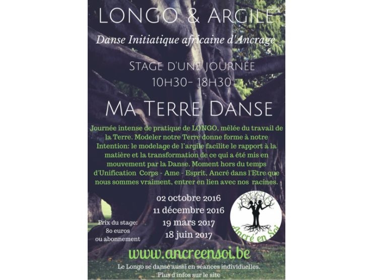 Pratique régulière et ponctuelle de LONGO, Danse Initiatique d’Ancrage. S’ancrer en soi, se redresser de l’intérieur, honorer le féminin et le masculin en soi et nos lignées. De nos racines à nos ailes, un pas de danse vers nous-même.